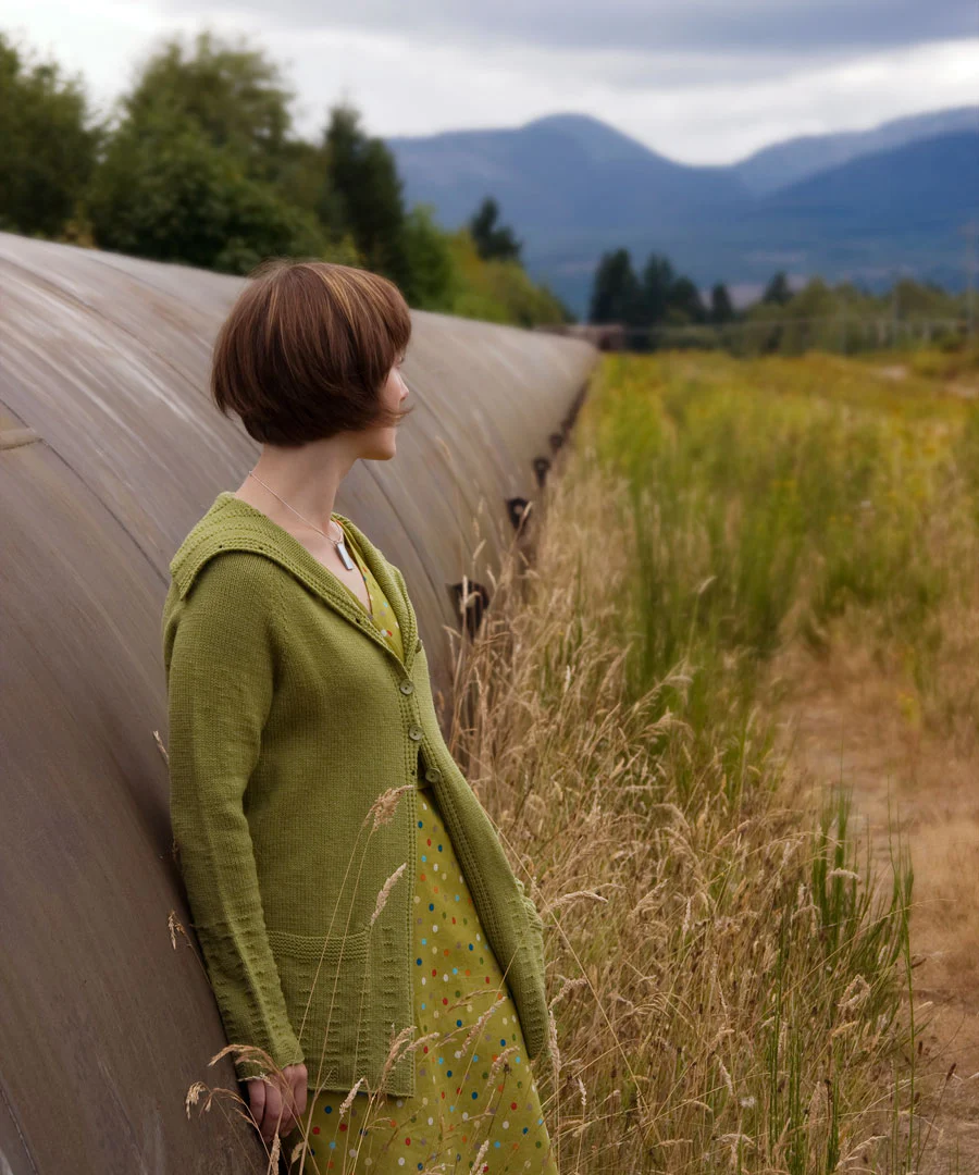Long, light, and gently shaped, with deep pockets and a versatile collar, Arbois is a gorgeous layer for cooler days. Wear Arbois however you like; the generous length and comfortable fit make Arbois pretty over jeans or a dress. The collar, left open, frames your shoulders and neck prettily. Or, buttoned up, the collar slouches comfortably like a cowl. I hope you enjoy the understated texture and the seamless construction in this relaxing and satisfying knit.
