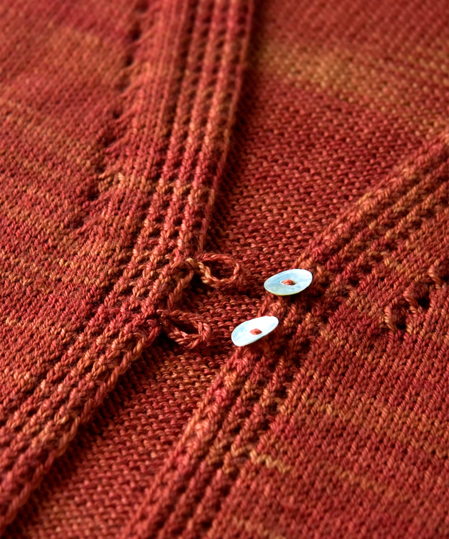 Construction Notes Galiano is worked flat on circular needles from the bottom up to the underarms. Fronts and back are worked separately to the shoulders. The front bands are worked at the same time as the body. Armhole edgings are picked up and worked after. Single chain button loops are added with crochet hook.